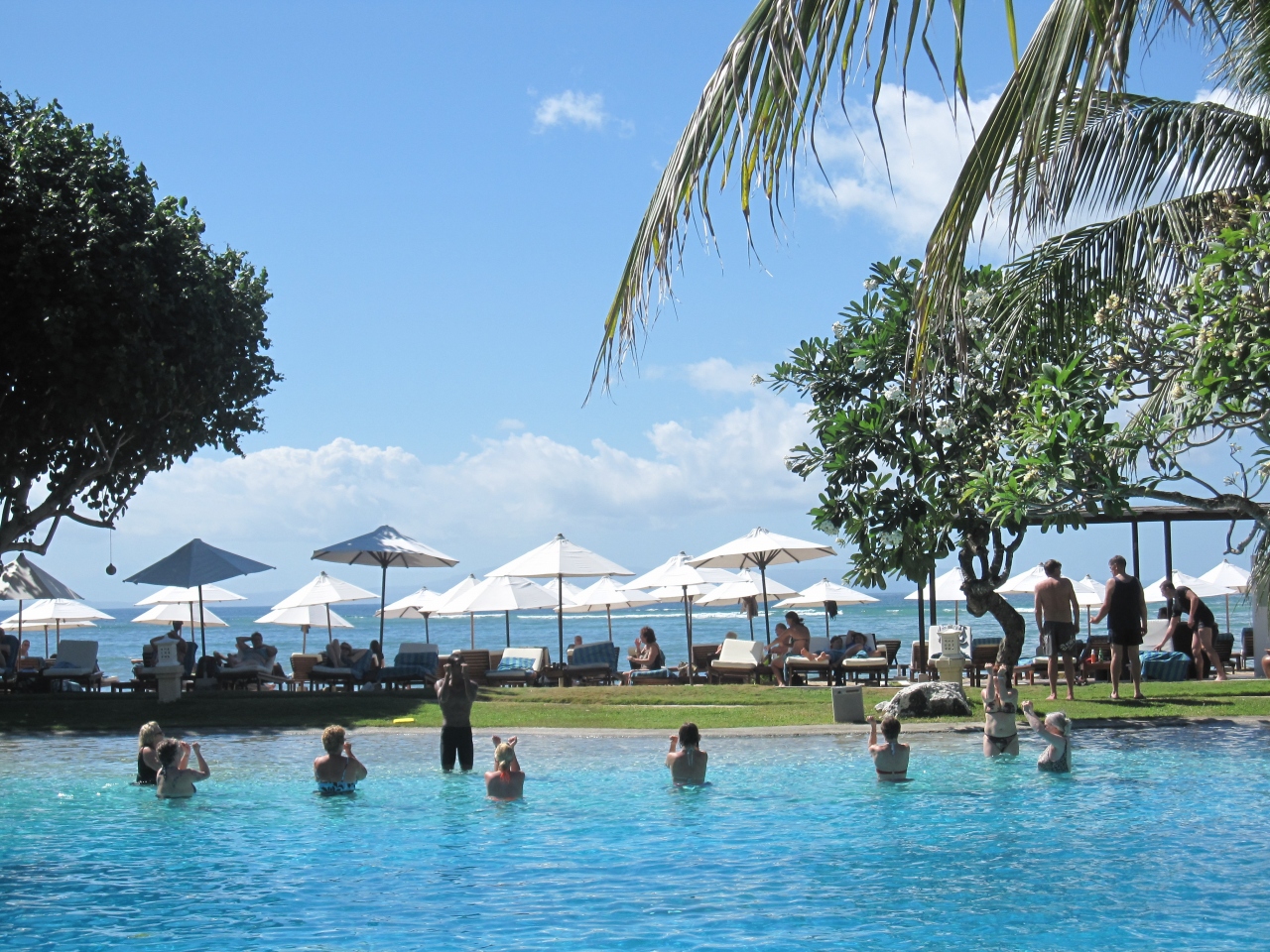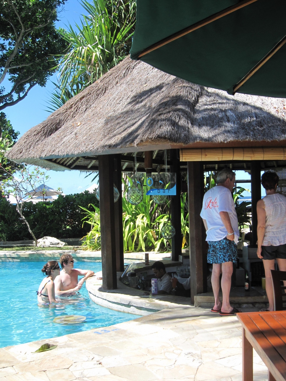 海の目の前のプールは眺めもよく、リクライニングチェアが沢山用意されていて1日中海を眺めていてもあきません。アクアビクス等も行われていました。プールに入りながら注文できるドリンクバーはユニークです。プルメリアの香りを楽しみながらリラックスした時間を過ごせました。