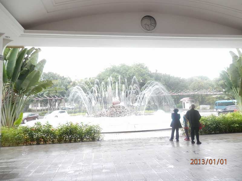 ホテル前の噴水は水もなく機能していなかったが。最終日の朝早く暗いころからにぎやかしい修理作業をしていた。チェックアウトする頃動いていた。水が流れているのは気分がいい。