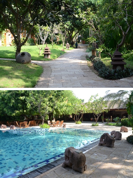 車道からは木々で覆われた入口しか見えないんですが、一旦ホテル敷地に入ると、庭やプールがきれいに整備されてあってほおっと溜息。