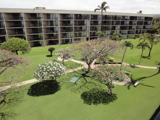 キヘイにあるカジュアルな雰囲気のコンドミニアムです。広い敷地内にはとてもよく手入れされた芝生が広がっており、皆さん裸足で歩き回っていました。