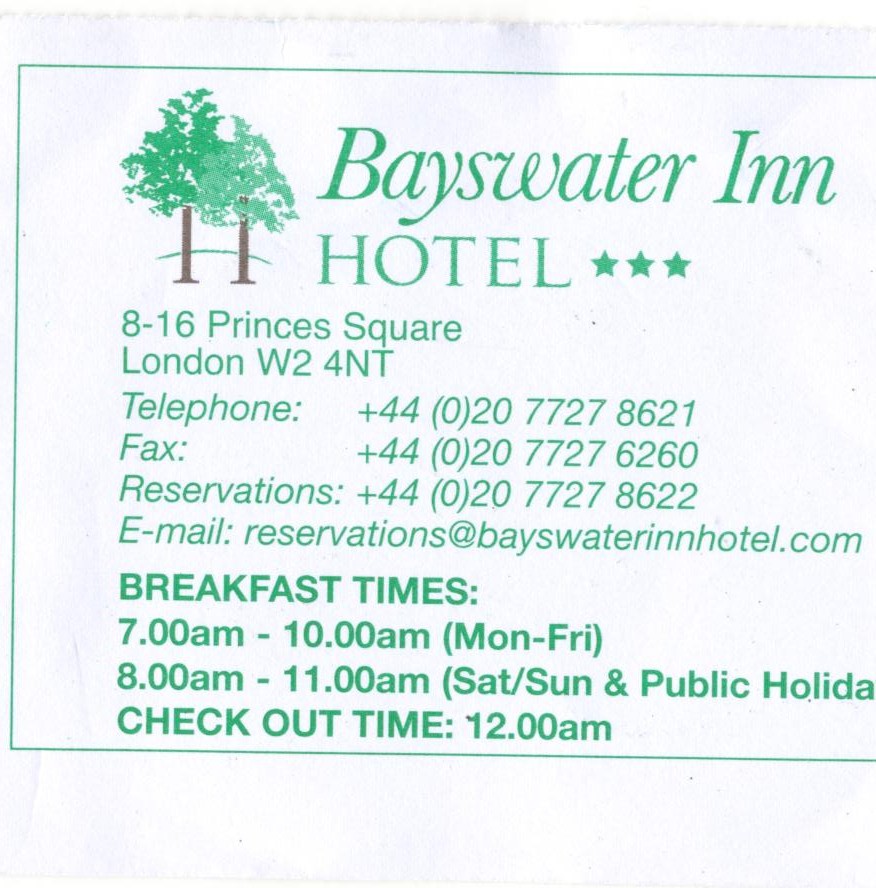 2012年8月のロンドンオリンピックの時にこのホテルに泊まりました。2泊して1泊目は8500円で、2泊目は5300円でした。地下鉄ベイズウォーター駅とクィーンズウェイ駅の両方の駅から徒歩8分から10分くらいで行くことが出来ます。フロントのすぐそばの掲示板の部分の壁のクロスが剥がれているところがあるなど、メンテナンスが行き届いていない感じがしました。客室が広く、朝食のバイキングのメニューが種類があっただけに残念でした。