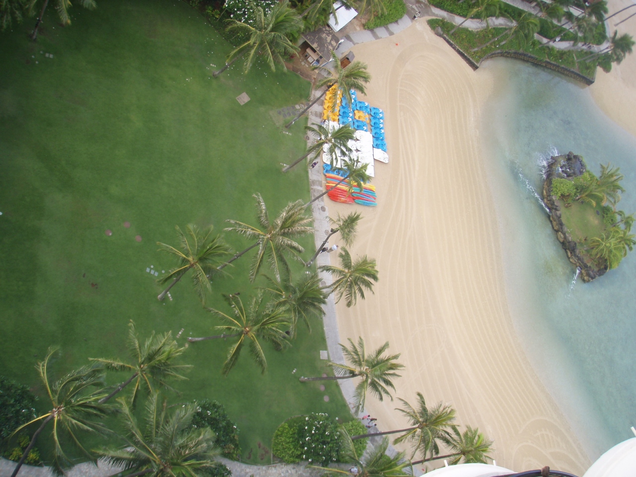 ビレッジという名前の通り、目の前にビーチ、いくつもの大きいプール(一部スラーダー付き)、人工ラグーン、全室禁煙、毎週金曜日の花火、ショッピングセンター、レストラン、ラーメン屋、ABCストア、お土産屋さん、ルアウショー、生バンドショー、諸々全てがそろった1つの街です。それこそ一歩も外に出なくても済んでしまいます。