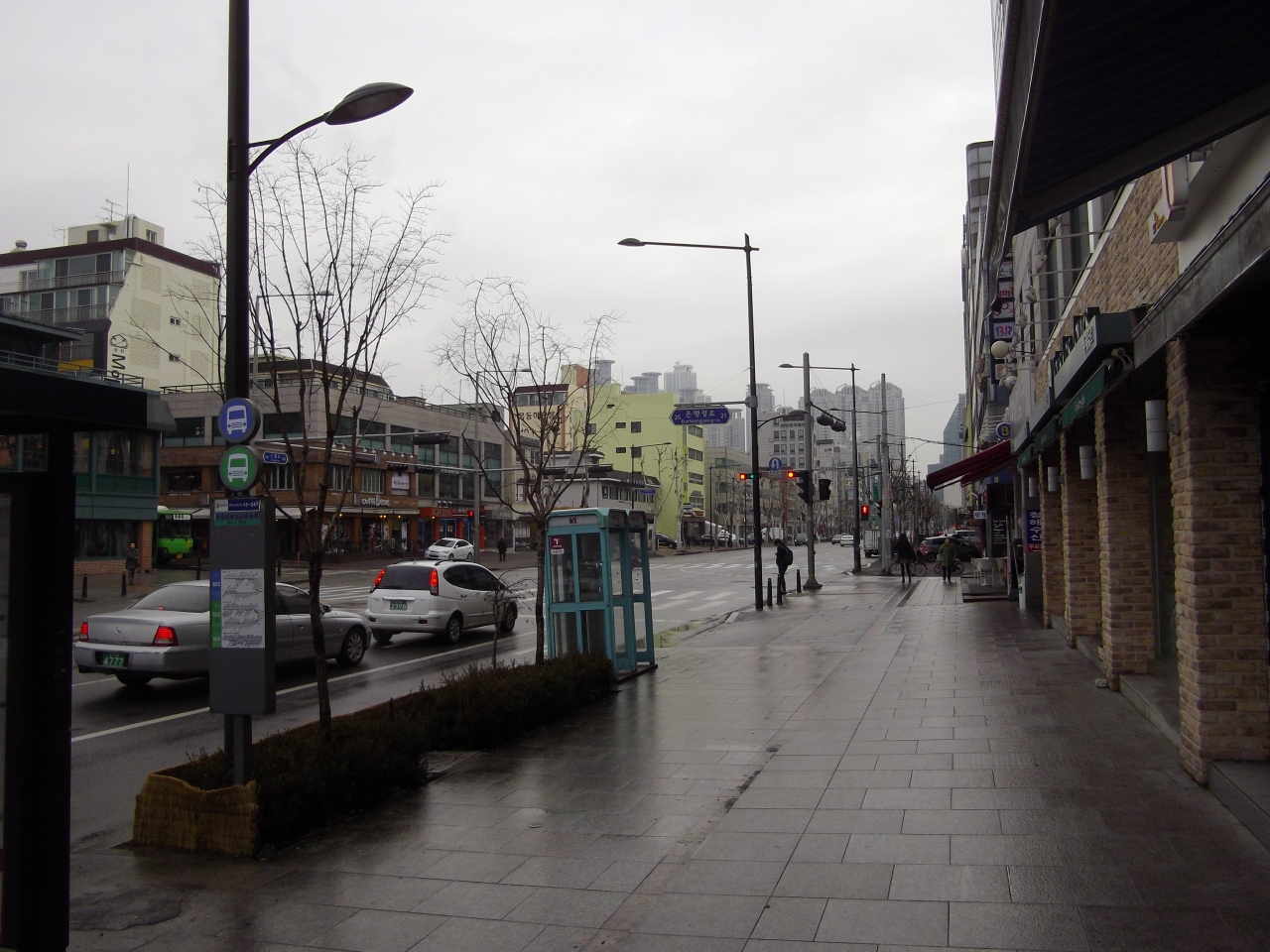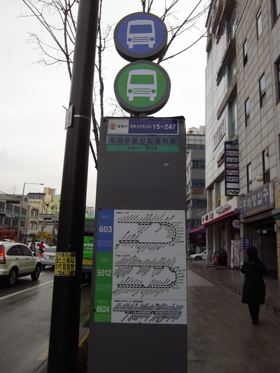 地下鉄5号線新亭駅3番出口徒歩5-10分。また、徒歩15秒のところにバス停「ウリ銀行新亭洞支店」があり、603番でソウル駅へ、また5012番で龍山駅に、乗り換えなしで行けます。