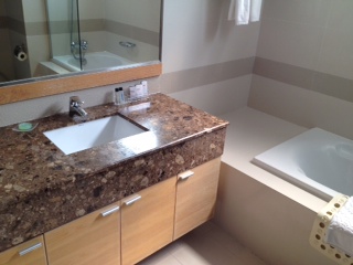 シャワーブースは仕切りがあるのですがガラスの面積が少し小さいため水が浴槽の外に出ないように注意が必要でした。