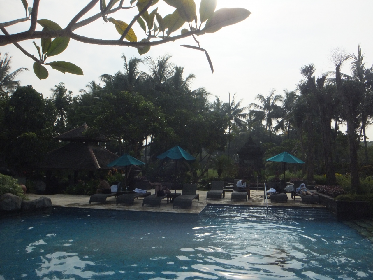 さすが5つ星のリゾートホテルというだけあって、ロケーションは最高でした。プールも数多くあり、屋外レストランでののどかな朝食や、夜の生演奏バーは、本当に日常を忘れて心底リフレッシュすることができました。時間さえ許せば何泊もしたかったです。アジアとクラシカルが上手に融合したようなかわいいホテルで、ホテルや庭を歩いているだけで満足できますが、ゴルフをする人はもっと楽しめるかも。客室レベルはゴージャスとは言えないが、適度におしゃれでした。しかし浴室まわり・・・・もとから毛が数本落ちていました。これはインドネシア人の清掃レベルの限界なのか???分かりませんが、マイナスポイントです。でもバスタブが付いていたのは、日本人にはありがたいですね。