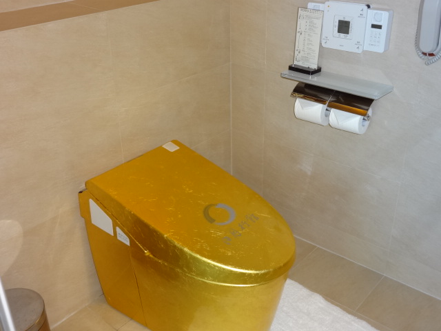 黄金に輝く便座はそれなりのクラスの方には丁度いいかもしれませんが、私のような庶民には居心地悪いかも。