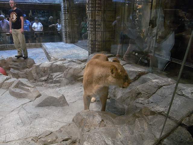MGMのシンボルはライオンなんですが、なんとここには本物のライオンがいます。ガラスの壁で仕切られているので、人との接触はありませんが、なんとボールで遊ぶなど、百獣の王のかけらすらありません(笑)