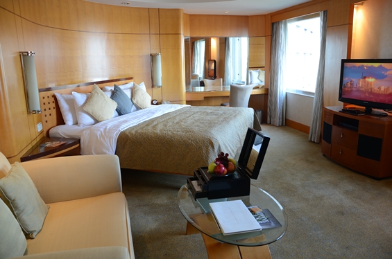 今回いただいた角部屋のエグゼクティヴ・ダブルは、適度な広さとワイドな眺めのお部屋。落ち着いた色合いのインテリアでくつろげます。