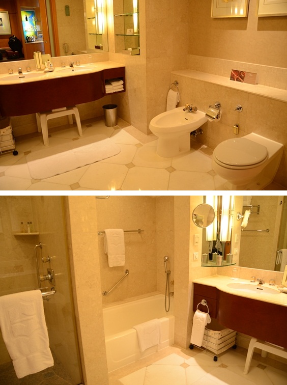 浴室も広く、洗面台が二つ。アメニティ類もよく揃っていて気持ちよく使えました。