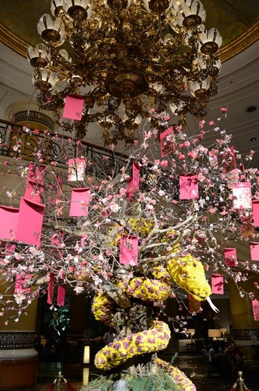 わたしたちが泊まったのは春節(旧正月)の時期で、ロビーにはヘビが巻き付いた木のオブジェがドーン。ここでお客さんたちは記念撮影をしていました。