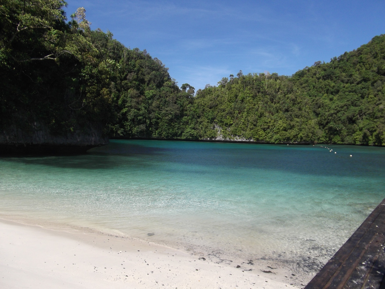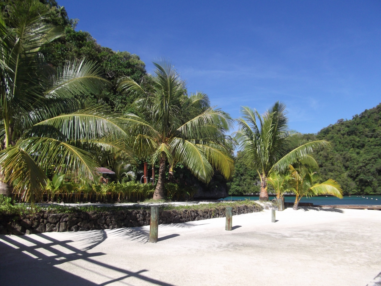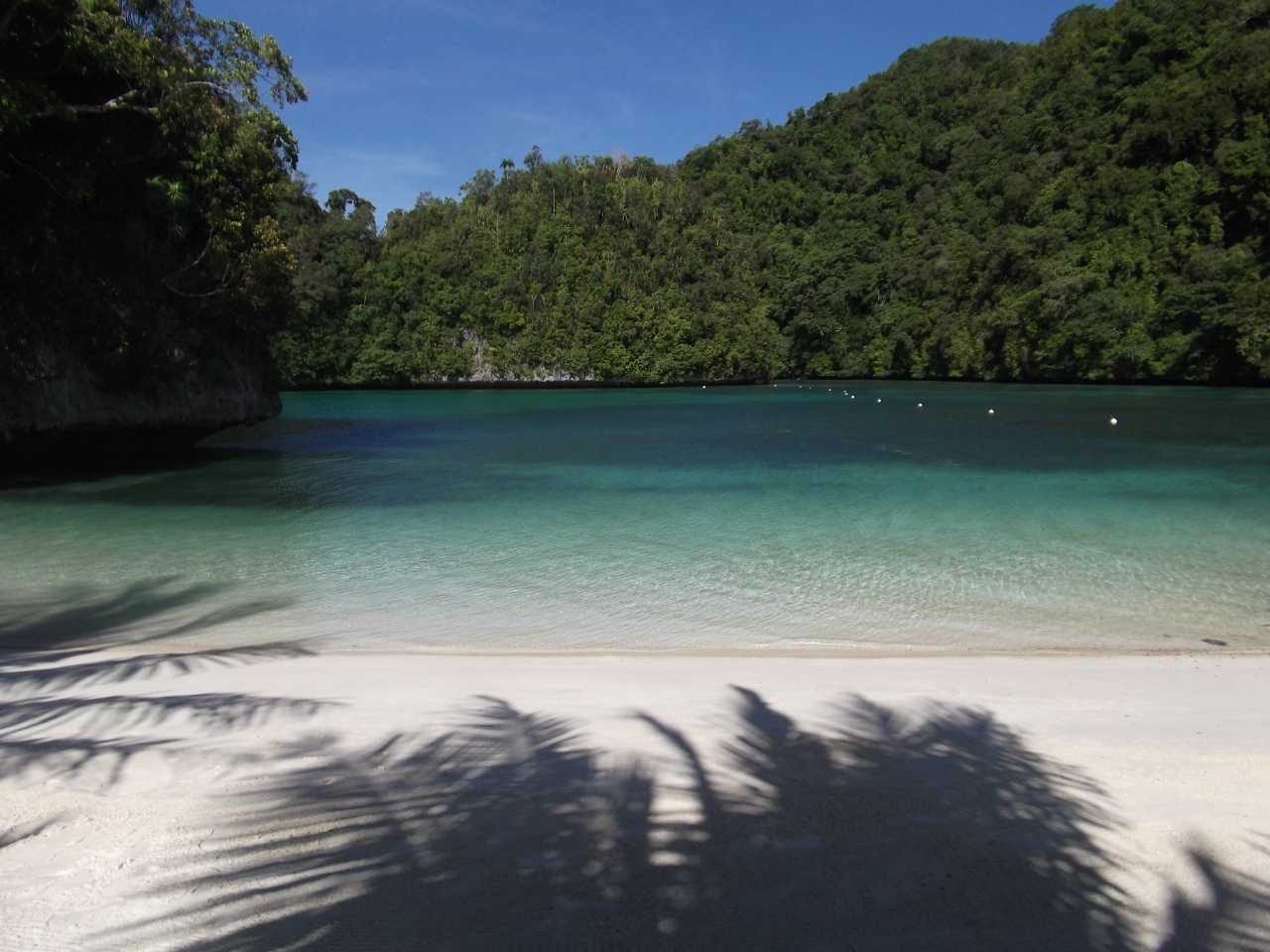 パラオ特有のポコンポコンとした小島に囲まれ、小さいですが波のない綺麗なビーチです。ビーチエントリーで左側はサンゴが殆どありませんが魚と沈戦機が見られます。