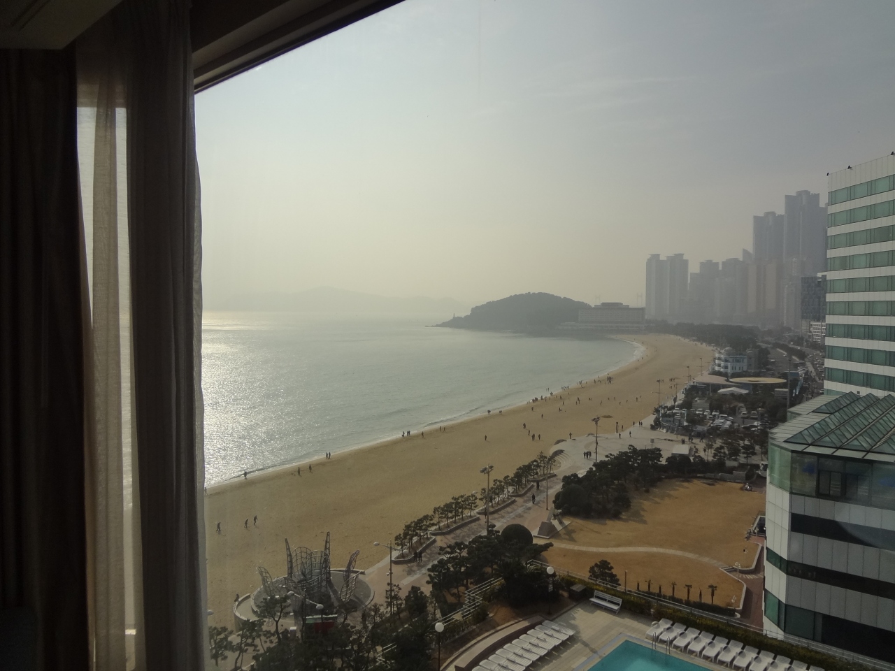 初めてのプサン旅行で利用しました。メインの観光地からは多少遠く、最寄駅からホテルまでも遠く感じましたが、海沿いのホテルなので、景色が良く、ゆったりとホテルライフを過ごせました。ラウンジが使えるプランを予約したので、夕方からハッピーアワーまでラウンジで過ごしました。ラウンジの窓からは一面に海が見え、夕日もとてもキレイでした。ラウンジの料理もおいしかったです。シャンパンはありませんでしたが、ワインやビールでとてもくつろげました。部屋はオーシャンビューだと値段が高いので、一部オーシャンビューという部屋にしました。それでも窓側に行けばキレイな海岸線が見えたので満足でした。