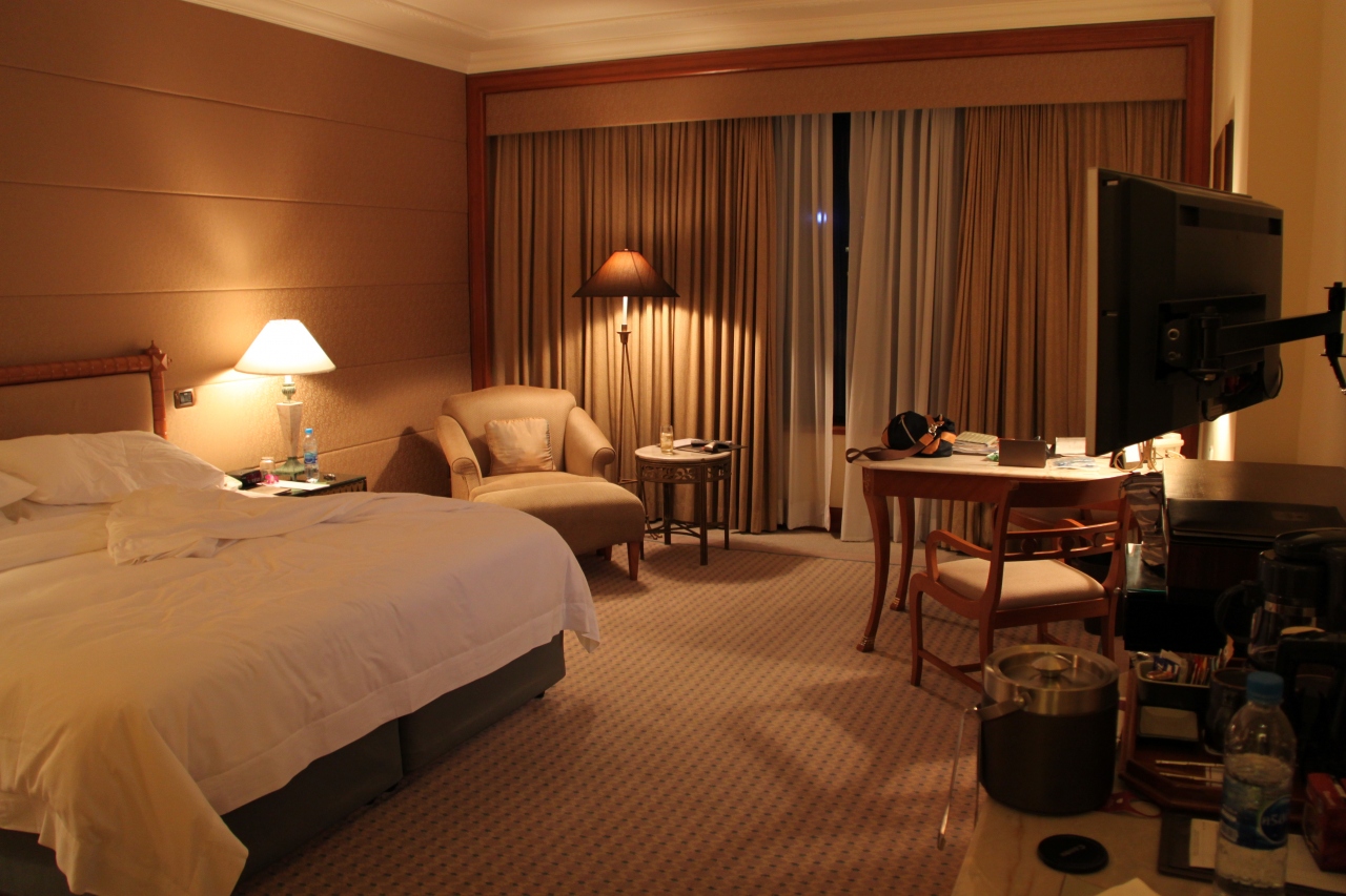 お部屋はツアーでの手配でしたので一般的なデラックスルームでの予約でした。事前にHPからスターウッド・プリファード・ゲストの無料会員登録(詳細はHPを参照)をしておきました所、チェックイン時に会員登録の有無を確認されましたので会員番号を口頭にて伝えましたら、24Fのスターウッド・プリファード・ゲストフロア(21階以上から最上階確か32階)のお部屋になりました。また、15時までのレイトチェックアウトにも無料で対応していただきました。
