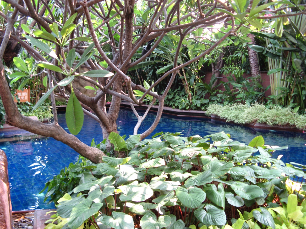 設備面では、場所がらから自ら高級ビジネスホテルと謳ってはいるものの3Fにあるプールは小さいながらジャングルの中にあるかのように緑豊かで、繁華街の喧騒からは遊離される設計になっており、連日欧米人のバカンス客でにぎわっていました。