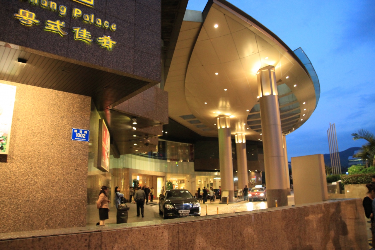 シンセンの火車站の北口を出てすぐのところにあります。建物自体は結構古いですが、さすがはシャングリラで、中はピカピカで豪華です。部屋も、落ち着いた色調で、じゅうたんも厚いし、壁もドアも厚いので、隣の部屋の物音や廊下を歩く人の声などは全く聞こえません。