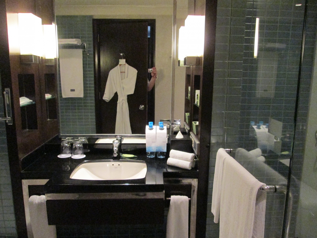 多少古くなってきている点を感じるが、部屋、館内はきれいに掃除されている。アメニティーはひげそり以外は揃っている。無料の水はベッドに2本、コーヒー・紅茶用に2本、洗面所に2本と合計6本置かれ、使うと夕方に再度補充される。夕方にはフルーツも支給される。BTS、MRTへの駅まで徒歩ですぐ行けるので、立地は良い。ホテル周辺は深夜過ぎて一人歩きしても安全で、近所には夜1時頃まで営業しているタイマッサージ屋が数軒ある。7階の朝食会場でもあるレストランは賞を獲得したようで、バンコクだけでなく過去に宿泊したホテルの中でも朝食は良かった。日本食コーナーがあり、ごはん、おかゆ、味噌汁、焼魚、納豆、豆腐、漬物、海苔巻寿司などが食べられる。スイーツ類も充実しておりアイスクリームを作ってくれる専用ブースがあった。