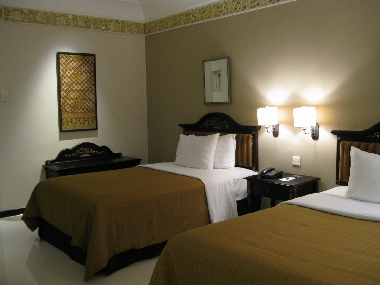 団体ツアーで利用したので、1泊予算はもっと安かったかも知れません。独特な建物のデザインや熱帯植物が生い茂るステキな庭園は、遠く南国に来たという気持ちを昂めてくれました。使った部屋はそれ程広く有りませんでしたが、ベッドの寝心地が良かったので、フライトの疲れが取れました。ミネラルウォーターは付いてましたが、スリッパ、ドライヤーが有りませんでした。朝食ビュッフェの食事は味・種類共に好かったですが、夕食に出た洋食コース料理はボヤけた味付けで残念でした。