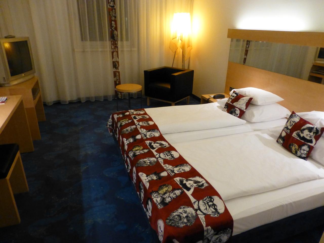 デザイナーズホテルのようで、ベッドカバーにはクロアチアの映画スターが描かれています。