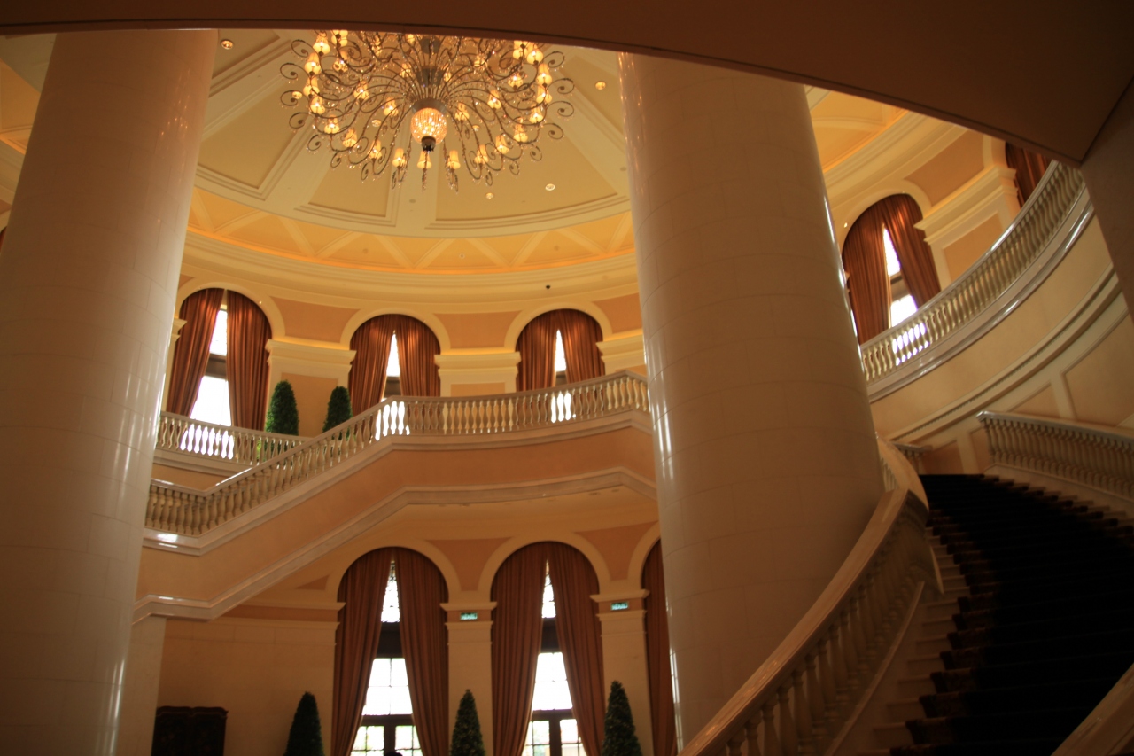 コタイのホテルではちょっと異色のホテルです。 カジノはホテル内には存在せず、別棟にあり、かつちょっとレートが高いので、あまり大勢の客が来ないため、ゆっくりとした静かな時間をすごせます。 エントランスの大階段は吹き抜けの階段になっており素晴らしいですね。1階には、グルメにはたまらない「紫逸軒」が入っています。夜は予約がないと入れません。