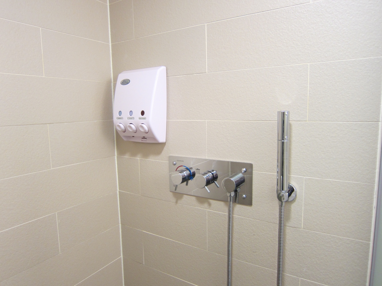 シャワーはグロエに似たシャワーなのでレインタイプ、壊れているという人もいるかもよ?水圧はあんまり感じられないのが物足りないと感じる人が多いと思います。