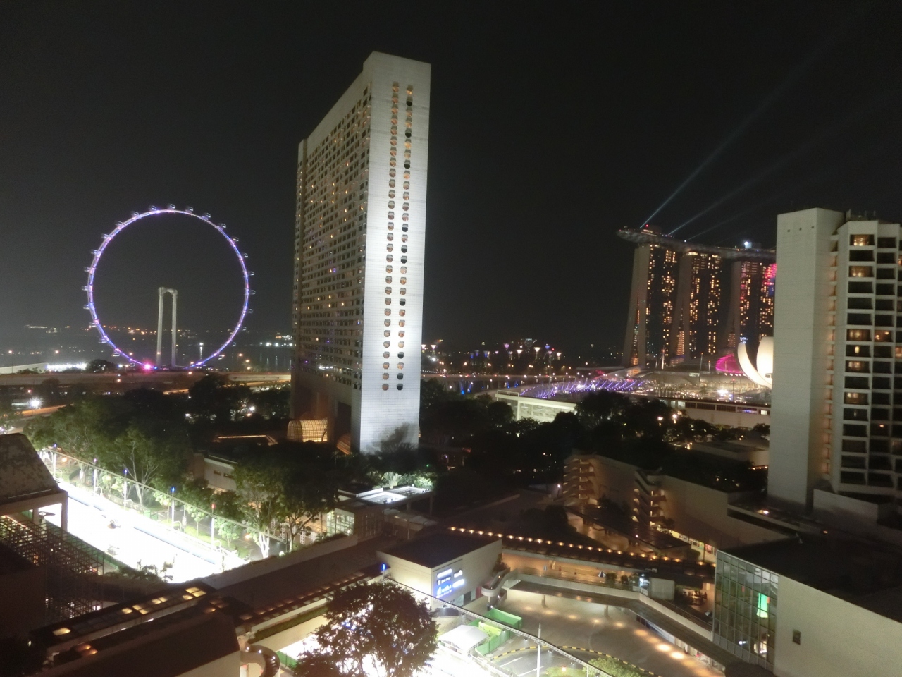 バルコニーに出ると、マリーナベイサンズ・マーライオン・シンガポールフライヤーと大パノラマが広がります。下を覗けばそこにはコース!!テンションもマックスです。