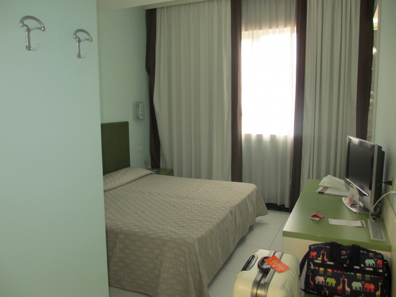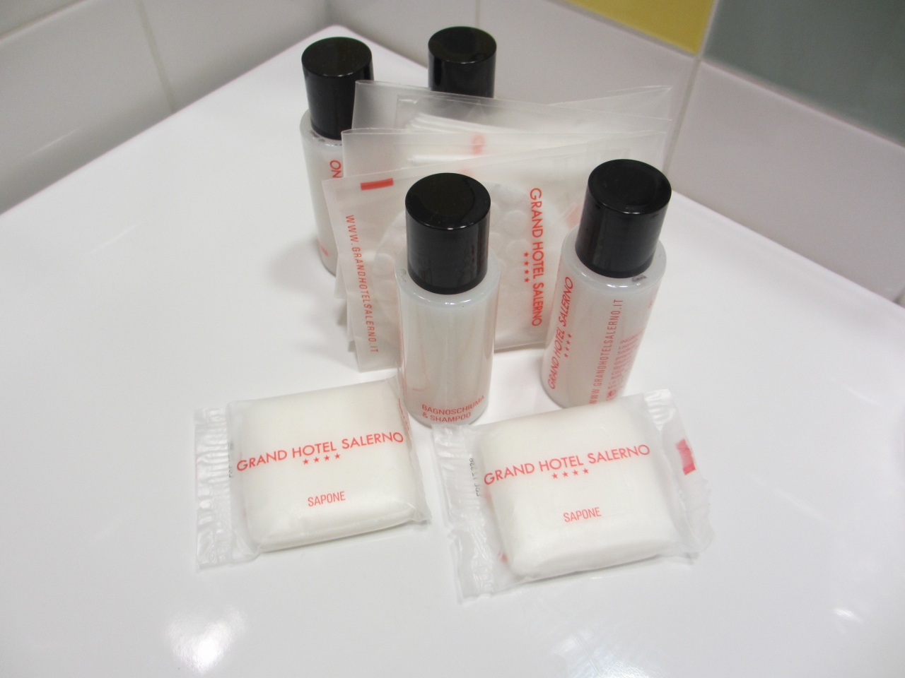 目の前はすぐ海。海岸沿いは幅の広い歩道があり、南国植物が植えてある素敵な並木が続き、街の中心部にも歩いていくことができます。かなりの規模のホテル。海側の客室ならとても素敵ではないかと思います。残念なが反対側の客室だったため、サレルノ駅がすぐいそばに見えました。駅は近くですが、防音が良いのか電車の音は全くしませんでした。設備は冷蔵庫、ドライヤーあり。バスタブはありませんでした。お湯の出も排水も問題なし。客室はあまり広くありませんでした。ホテルの近くはとても環境が良く、朝の散歩も気持ちが良かったです。歩道をランニングする人がたくさんいました。
