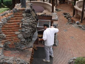 ピザを焼いている様子を見に行ったり、暖炉を眺めたり、雰囲気も堪能しつつ、ゆっくり食事を頂きました。