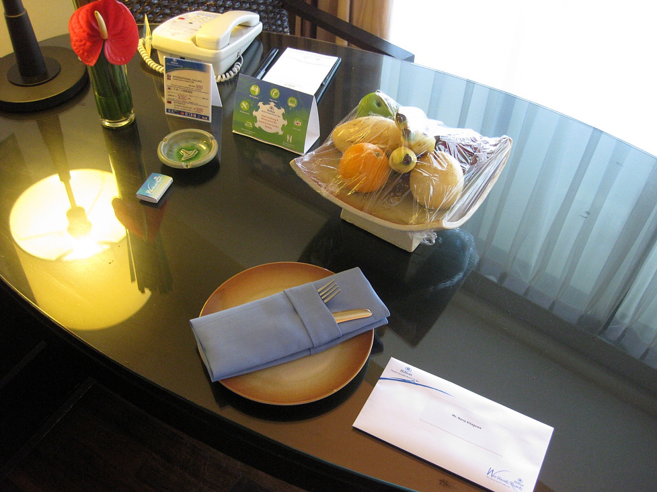 プーケット空港から乗り合いバンでホテル入り口のウェルカムロビーに到着。そこからホテルのトロッコバスみたいな車でチェックイン・ロビーへ向かいます。私のチェックイン担当スタッフは韓国人でした。タイのホテルで韓国人スタッフに相手をしていただいたのは初めてだったので、ちょっとびっくりしました。アサインされたのは、前回同様にロータスウィングのデラックスプラスルーム。数年ぶり2回目の利用ですが、客室の扉には「ウェルカムバック」と花のハートマークで装飾がなされており、1人で身体を休めに来ただけのオジサンとしては恥ずかしい設えです。客室面積は62平方メートルとなってはいますが、ベルコニーも含めての数字だと思います。ところどころ経年劣化が進んでいる感じがしました。ロータスウィングの最上階には専用ラウンジがありますが、ロータスウィングの宿泊者すべての人が利用できるわけではないという、利用基準が不明確なラウンジです。海を正面にするラウンジからの海の眺めは格別で、ティータイム・カクテルタイム共に楽しみました。また無線LANとパソコン2台は自由に使えます。朝食はレストランでビュッフェをいただきましたが、団体客が多くて騒がしい雰囲気でした。レストラン周辺には孔雀が闊歩していて、宿泊者に人気があります。夕食にはタイ料理レストランを利用しました。お客さんは私一人と寂しい雰囲気でしたが、味は美味しかったです。ツアーの団体客は朝食後に観光に出てしまうからだと思いますが、昼間は本当に静かなホテルで、3箇所あるプールにもほとんど人の姿を見ませんので、文庫本でも持ってプールで寛いでいると幸せな気分になることができます。ただ、カロンビーチの繁華街とカタビーチの中間地点にあるホテルなので、買い物派・観光派には不便かと思います。