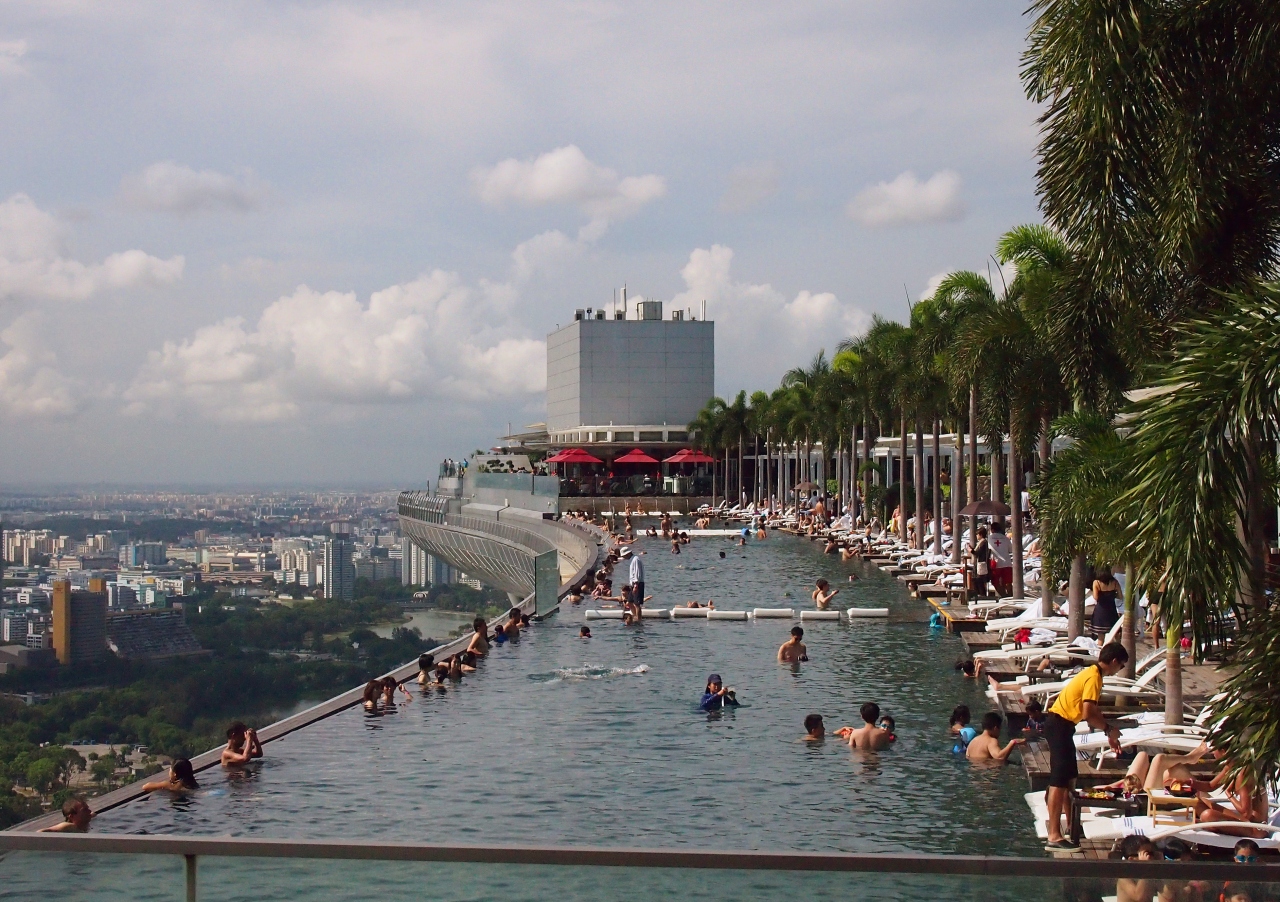 なんといっても、夜のプールは最高。人も少なく、地上200mからのシンガポールの夜景は絶景です。