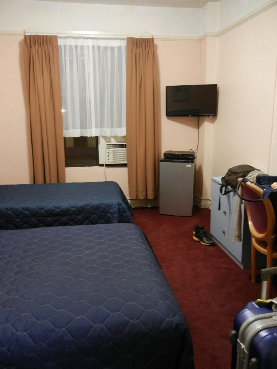 部屋に入ると日本の一般的なビジネスホテル並みの狭さで、スーツケースを広げるのに苦労するレベルです。