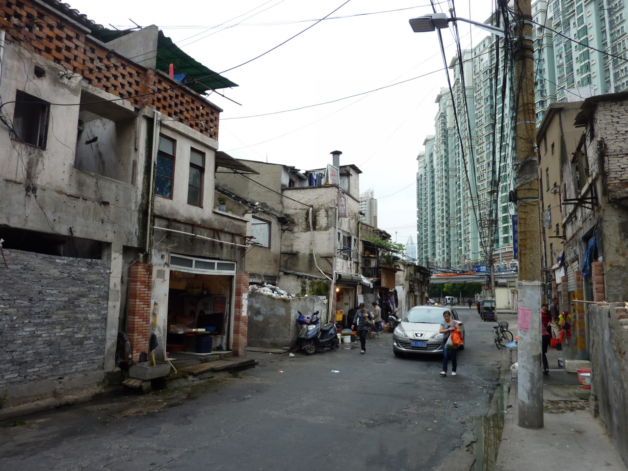 インターコンチネンタルの方角に歩き、角を曲がると一気に下街のうら寂しい通りになりました。電柱の裸電球の下で住民が飯を食べており、暗い中でも壊れかけた家が目に付きます。
