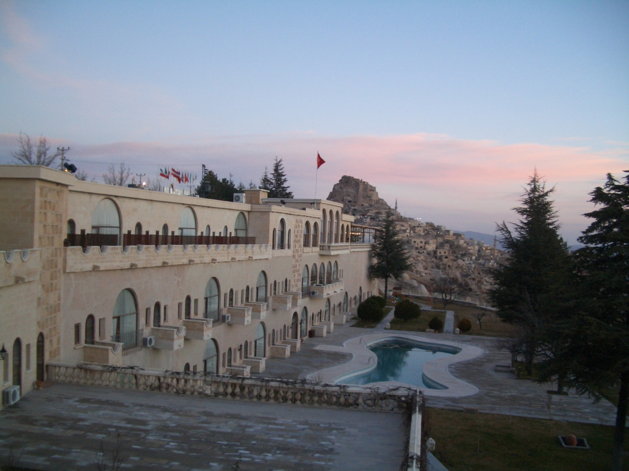 高台に立つホテルで景色が素晴らしい、カッパドキアも洞窟住居一望できます。どの部屋からも景色がみえますし、食事は品数も豊富で見た目も鮮やか、味もよろしゅう御座いました。掃除も行き届き清潔でした、最低連泊はしたいホテルです。