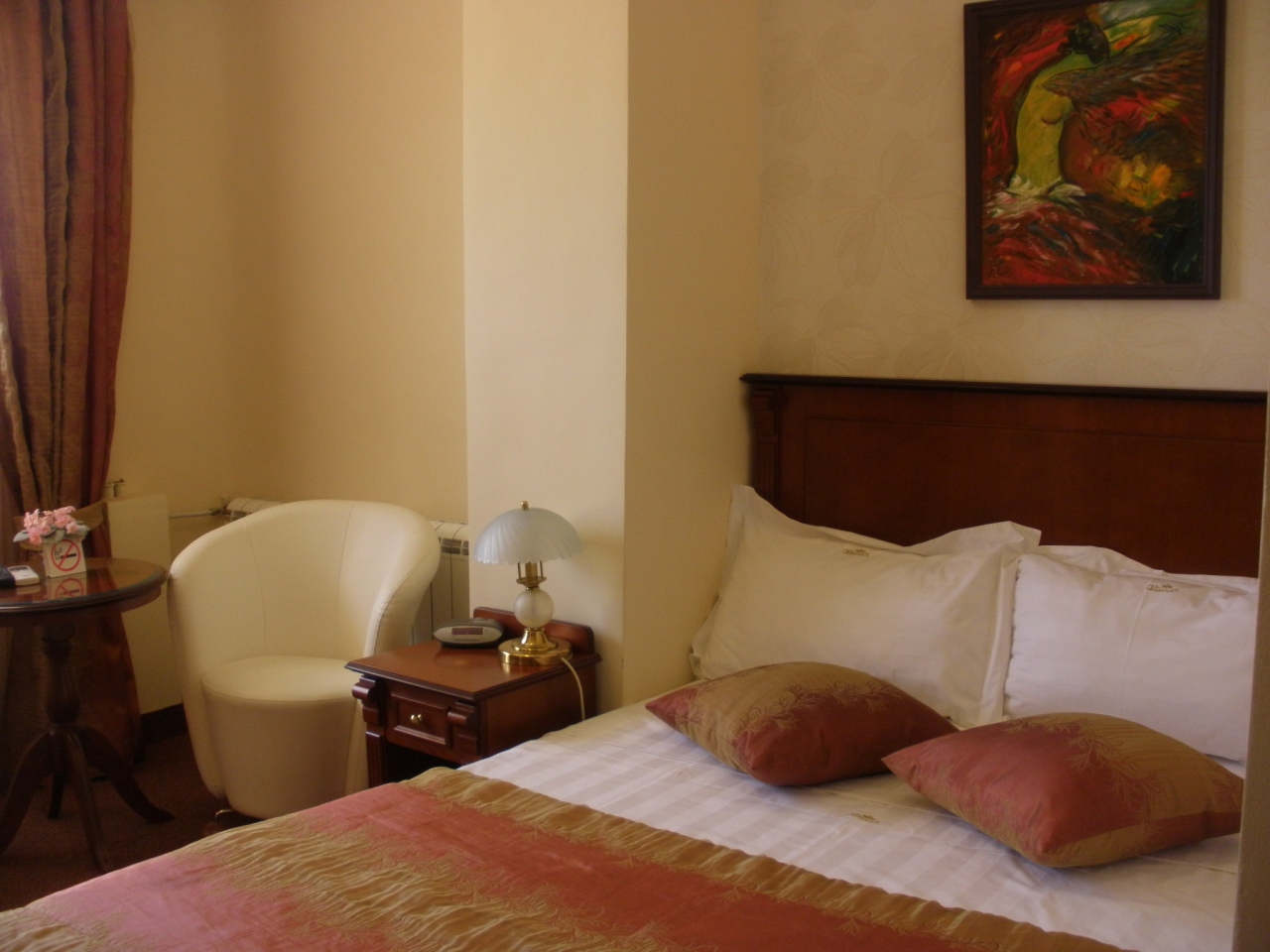 鉄道駅&バスターミナルから徒歩10分のロケーションで、セヴトポリス広場まで1~2分のホテル・パラス。