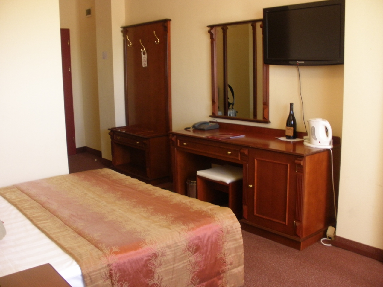 TV、TEL、ドライヤー、ミニバー(電源が入らず)、コーヒーポット(有料)、エアコン、室内金庫、テーブルセット、デスクセット・・・と一応そろっています。