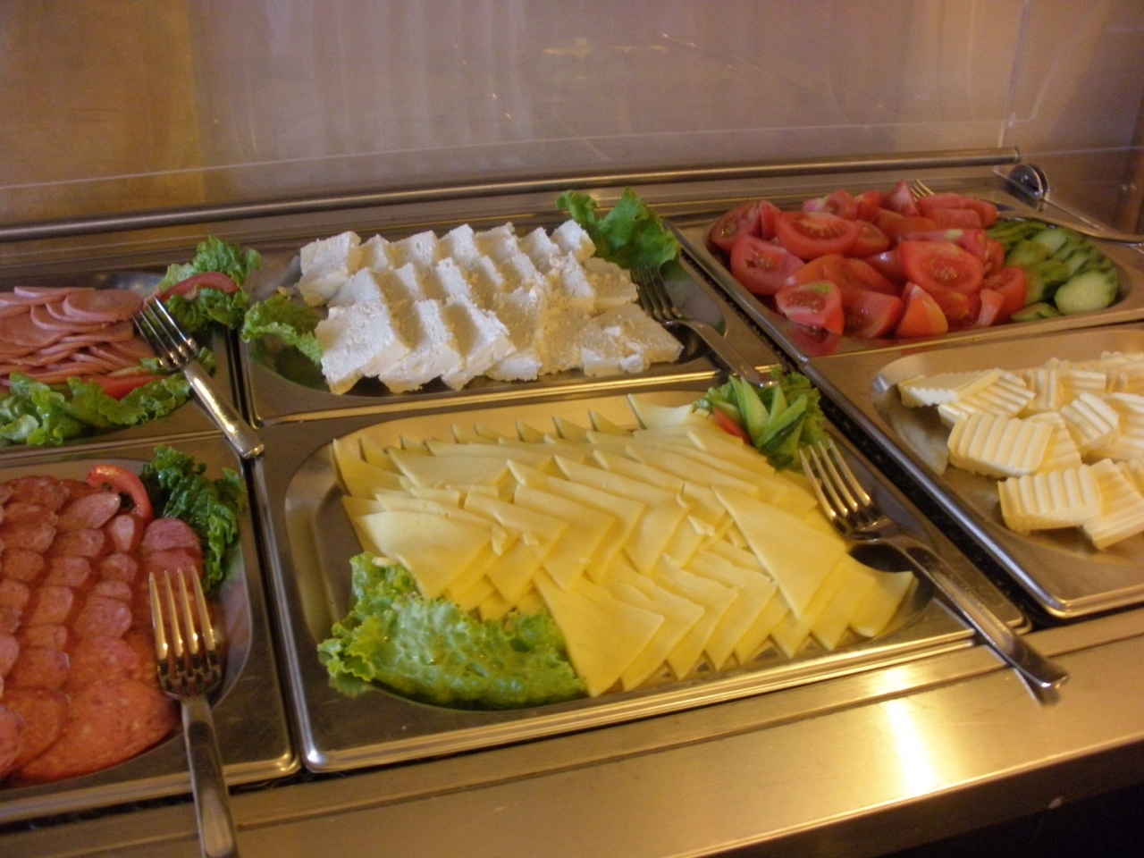 朝食は、7:30~10:00、数種類ずつのハム&チーズ、トマト・きゅうり、スクランブルエッグ、ホットウィンナー、シリアル類、パン類、パイ、さくらんぼ、ポタージュスープ、ゆで卵…といろいろあって、満足できました。