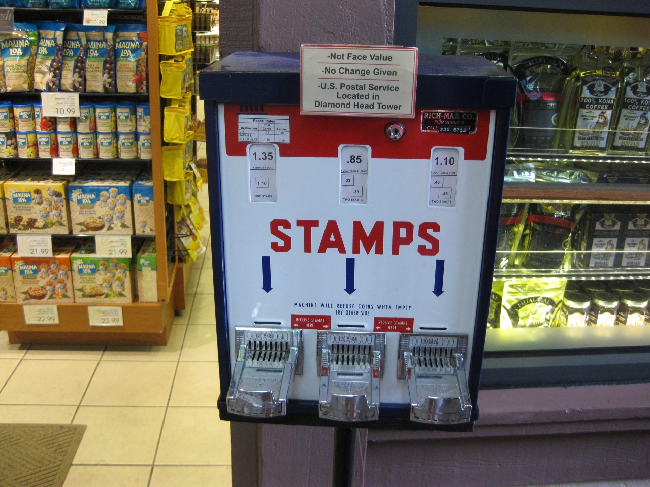 その時、コインの持ち合わせがなかったので翌日行ってみると、売り切れの張り紙があり、そのあとその紙がはがされることがなかったので、フロントで聞いてみると、ダイヤモンドヘッドタワーの中にポストオフィースがあるとのこと。