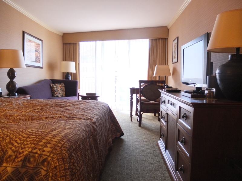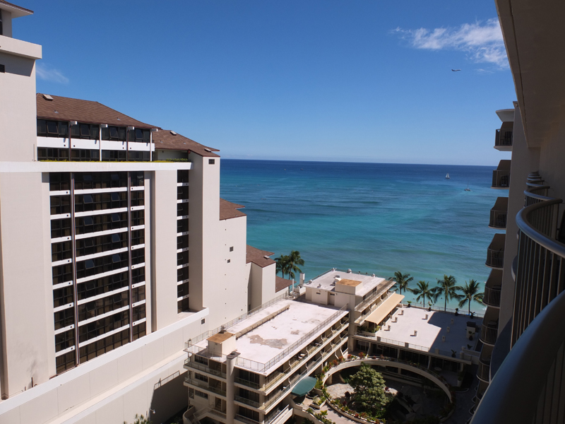 ワイキキのホテルの予約なんて急がなくても空きはいくらでもあるさとのんびり構えていました、そして一ヶ月ほど前になっていざ予約しようと各ホテルのホームページ見ると、予想に反して候補にあげていたホテルは超高額な部屋を除いては満室です、独立記念日に続く土日だからかどうかわかりませんが私にとっては予想外です、そして前回泊まったアウトリガー リーフ オン ザ ビーチに空きがあることを確認、今回は別のところに泊って見たいと思っていたですがアウトリガー リーフ オン ザ ビーチは前回利用して満足していたのでこちらに3泊で決定、前回同様JALホームページから申し込みました。ハワイ島がメインの旅なのでワイキキでのホテルはこれで十分です、パーシャルオーシャンビューの部屋です、部屋は清潔感もあり、ある程度の広さもありどこに行くにも便利です、ホテルのスタッフは日本語対応の人も含め、日本人から見ると少しラフなところはありますが気さくでとても親切です、また客もアメリカ人が多いからか皆フレンドリーな感じで気さくに話しかけてきますこの雰囲気が気に入っています、ホテル内のショアー バードレストランも人気で宿泊客以外の人もたくさん訪れていつもにぎわっています。