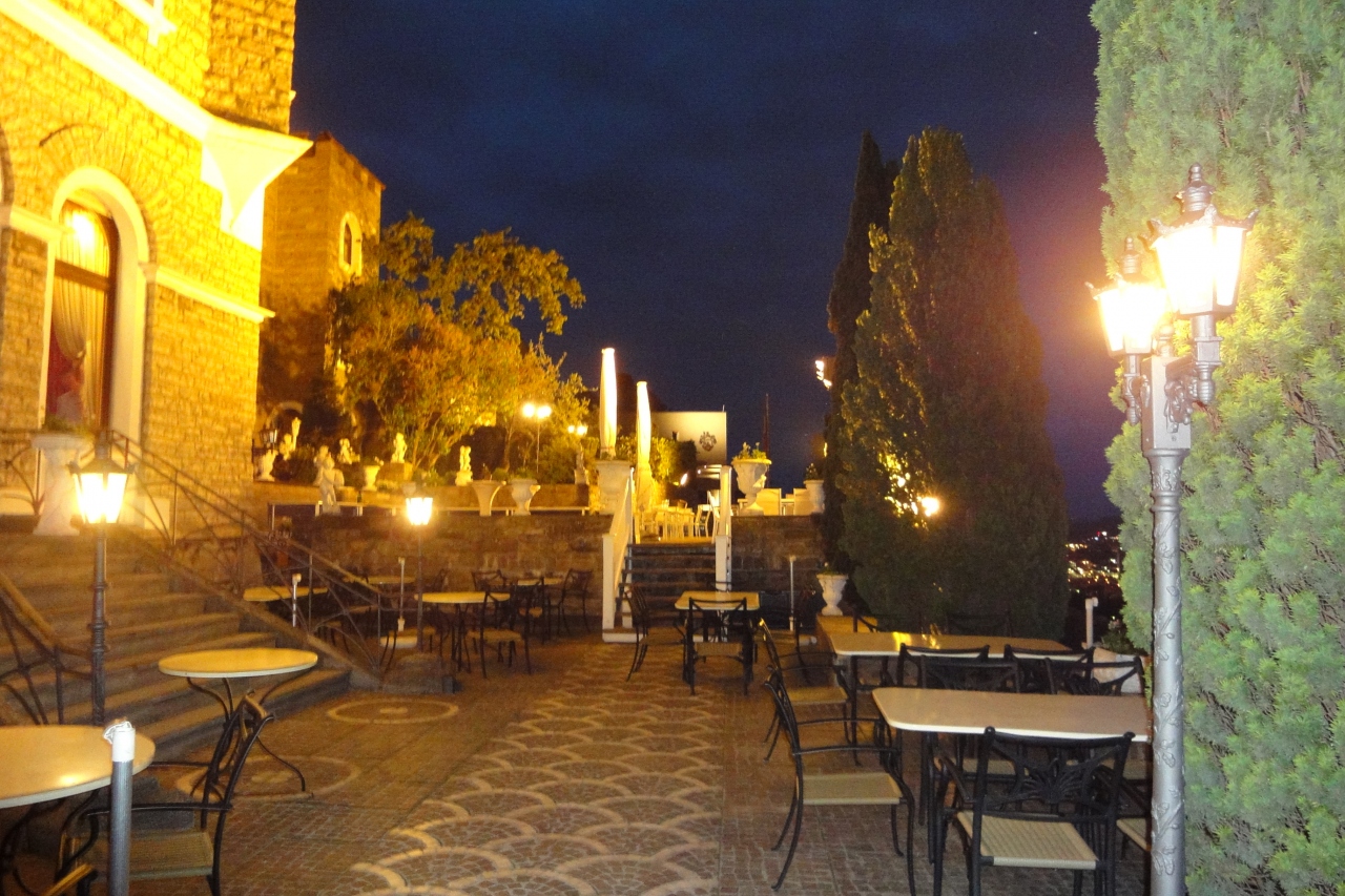 高台にあるため、アクセスは不便ですが、その分眺めは最高です。到着日も翌朝の出発時点でも生憎の雨で、あまりゆっくり見られませんでしたが、ホテルの前の道に立つと町の眺め(特に夜景)が本当に素晴らしいです。