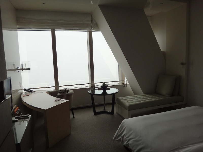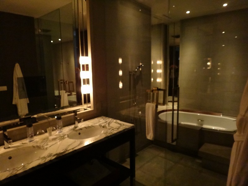近年の開発が進んでいる金融地区、浦東に位置する。シャングリラ、ジュメイラ、リッツ、フォーシーズンズなどが名を連ねる激戦区にて、最も標高が高いホテルとして有名である。エントランスから直通ELVにて一気に87階へ。そこにフロントがあり、客室はそこから別のエレベータで数フロア下る。外灘ビューの方が値段が高いが、雨もしくは曇り、もしくはガス(pm2.5)になってしまうと全く見えない。全体的にはラグジュアリー感を前面に押し出しており、家族向けではない。部屋によっては構造ビル特有の柱があり景色を邪魔する。