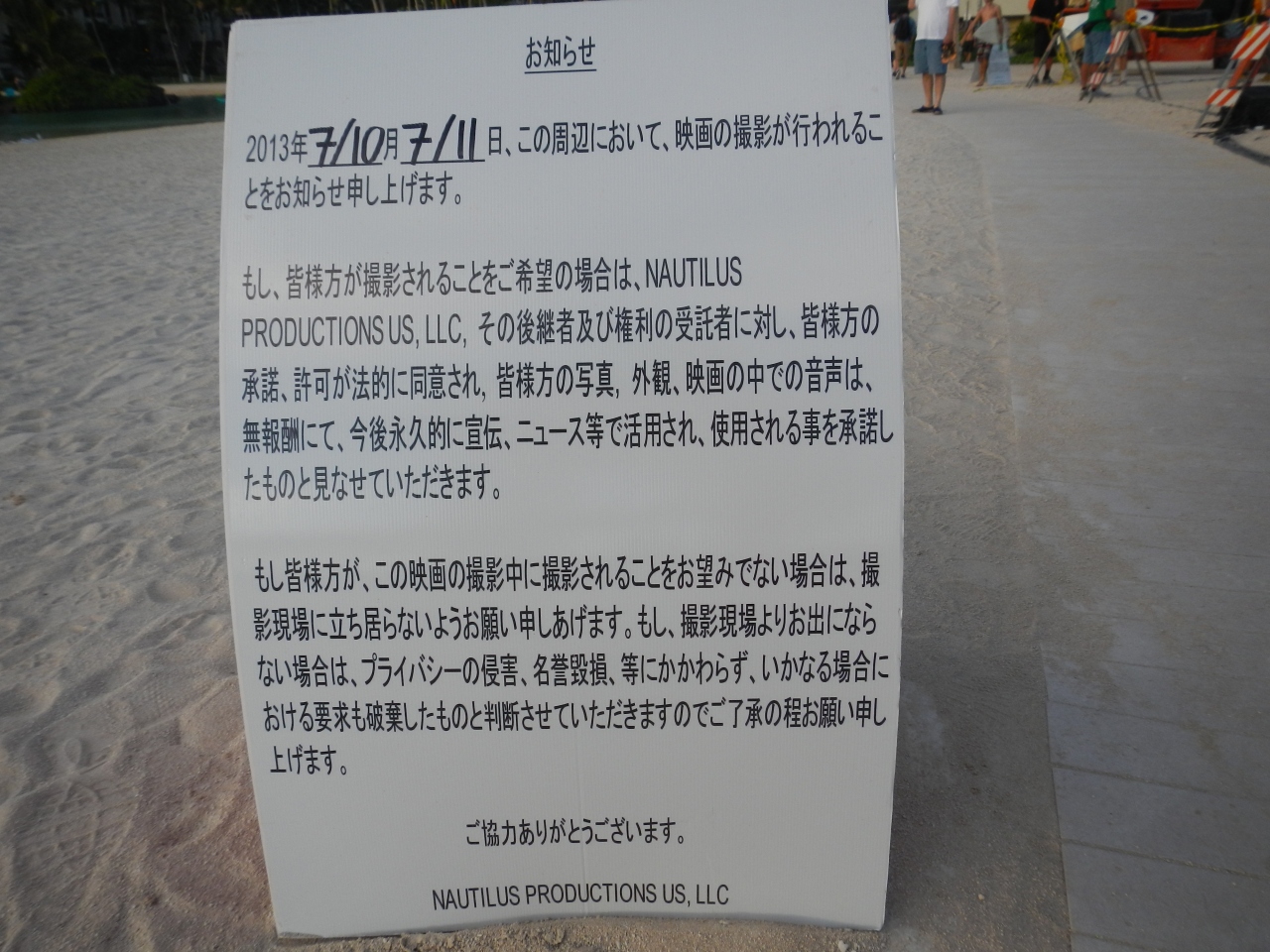 いつものように金曜日の花火も堪能したのですが、今回は、ヒルトンのビーチでハリウッド映画の撮影をやっていました。