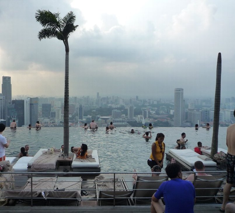 やや曇りの天気でしたが,宿泊者専用の空中のプールは最高でした。現在はどうかわかりませんが,プールサイドのイスは自由席ではなく,事前に予約がいるとのことで若干とまどいましたので,これから行かれる方は確認しておかれたほうがよいかと思います。