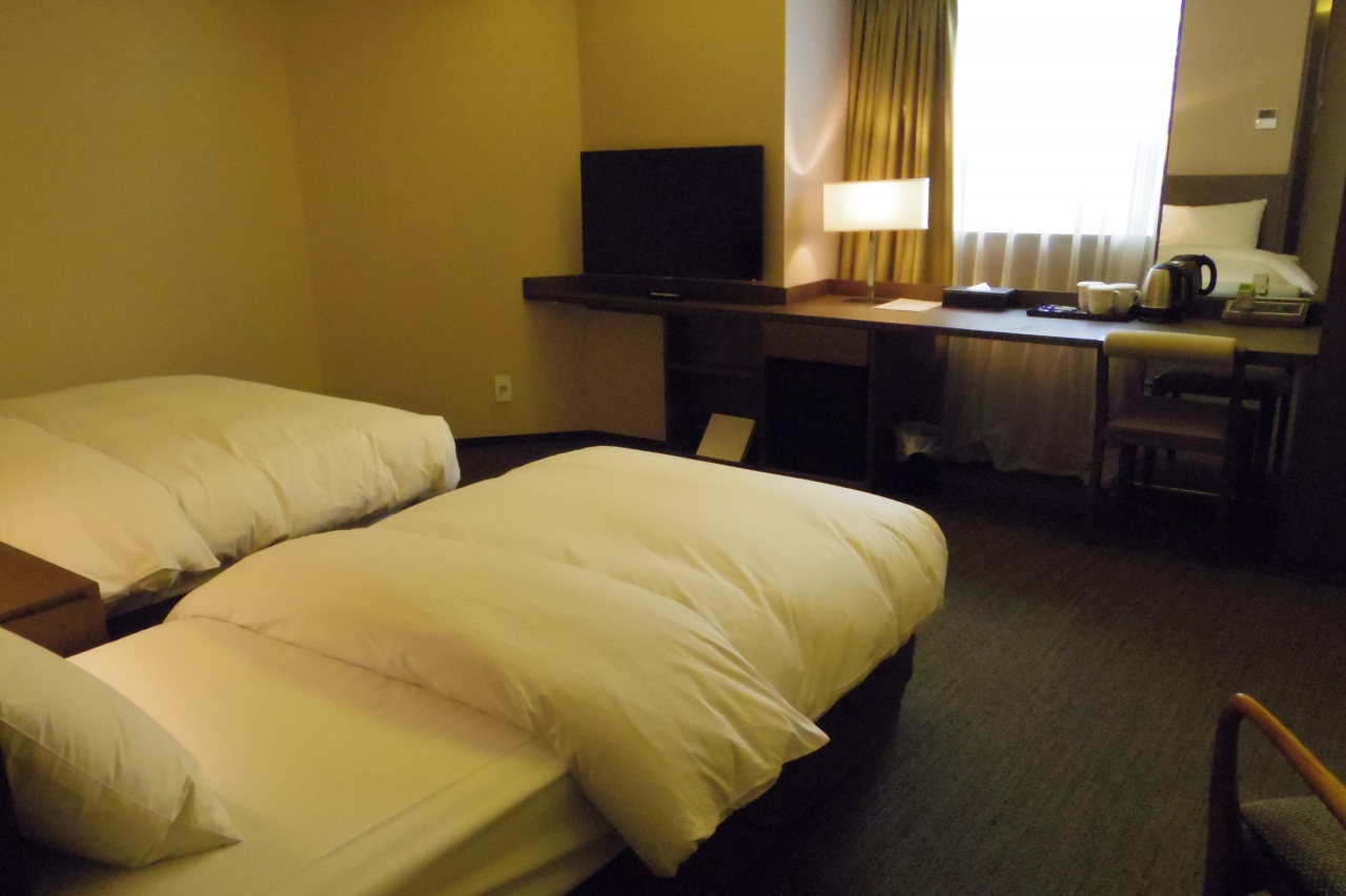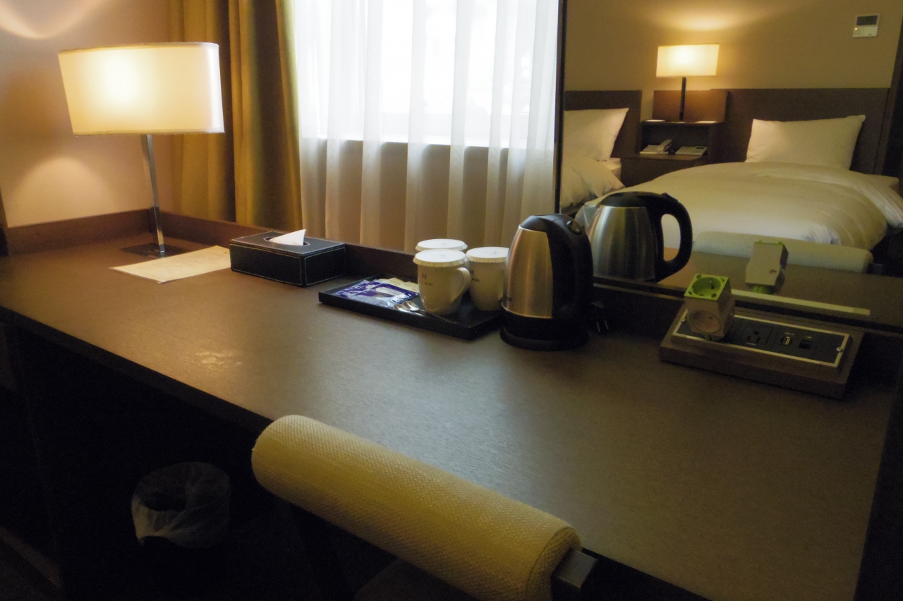 16時頃のチェックインだったからか、スタンダードダブルの予約が、2階とはいえ、シングル+ダブルの2ベッドのファミリー向け的な部屋になりました。テレビも42インチ?で大きく快適。日本のコンセントも刺さります。