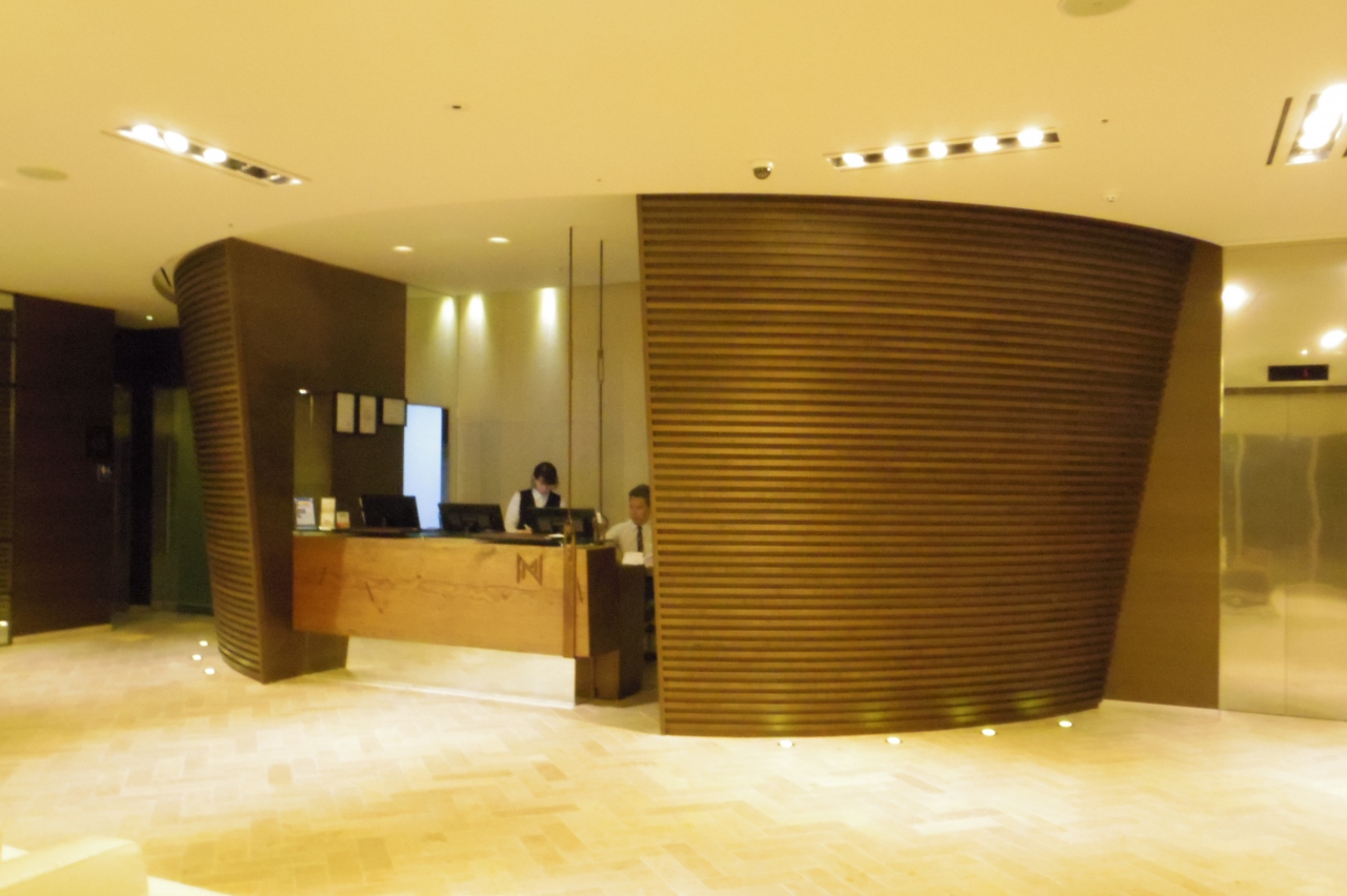 エレベータには、非接触式の部屋キーをかざさないと上の階に行けません。