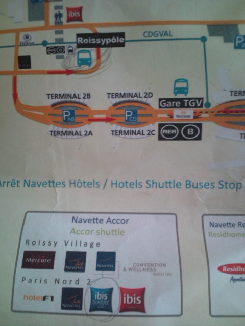 CDGVALを降りたあと、左側の出口です。(赤いibisのマークがある、市内へのシャトルバスとは逆の出口です。)
