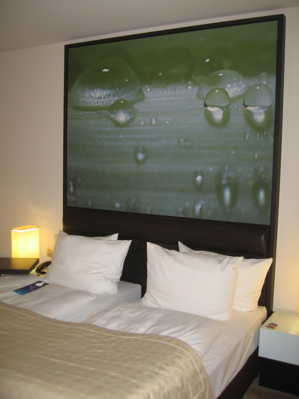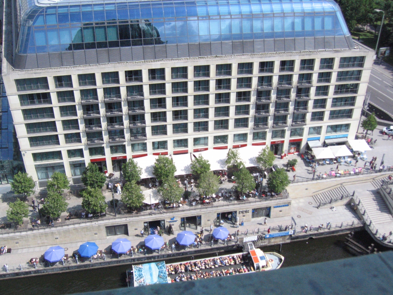 テレビでも紹介された巨大な水槽のあるホテルです。部屋は広く快適でした。枕元にはハリボのお菓子がサービスとしておいてありました。場所は博物館島のすぐそばにあります。大聖堂の川を挟んで反対側です。バス乗り場は大聖堂の前にあります。小さなお店でしたら,ホテルを出て左に少し歩くとあります。アンぺルマンショップや土産店もあります。スーパー(カイザース)はハッケシャー・マルクト駅のトラム乗り場の近くにあります。ブランデンブルク門までは,徒歩で25分前後でしょうか。とにかく現在のベルリンは工事だらけです。