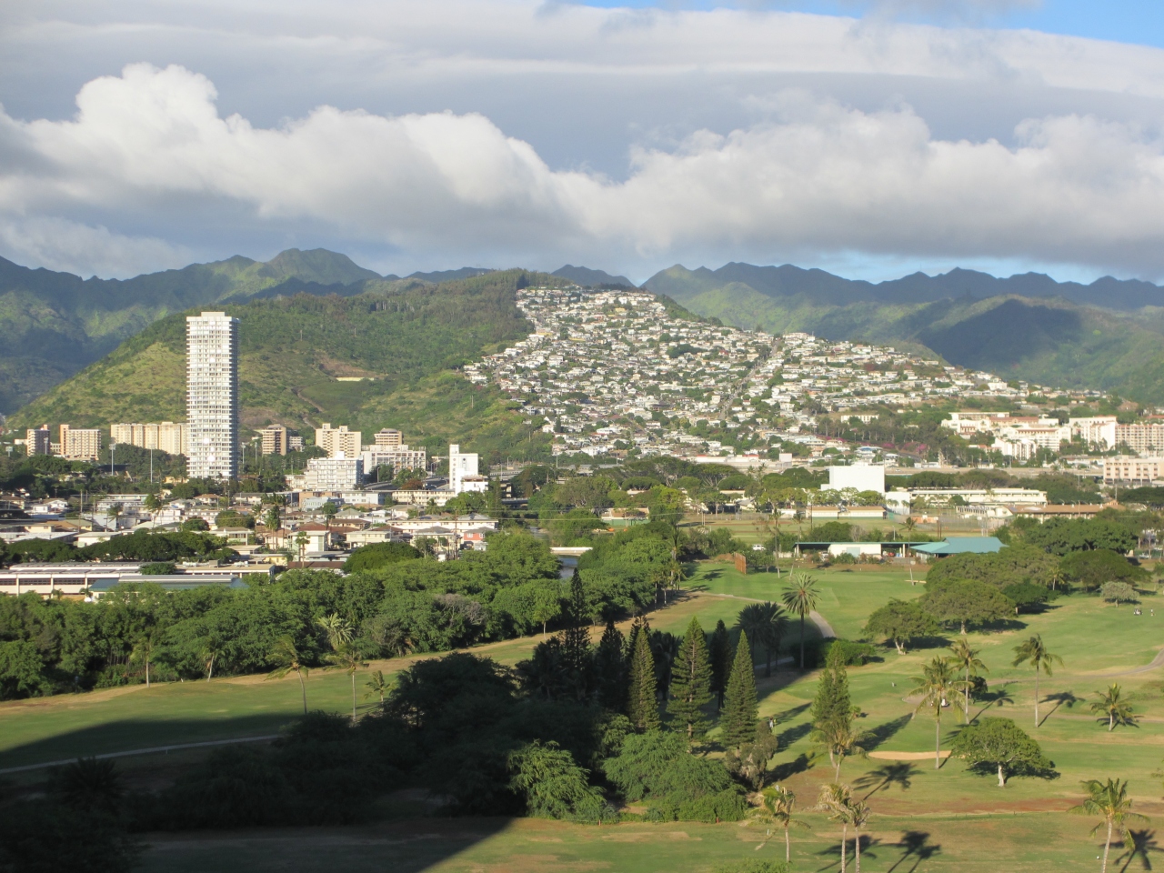 山側の部屋だったので、すぐそばのアラワイ運河と、遠くの民家が見えて