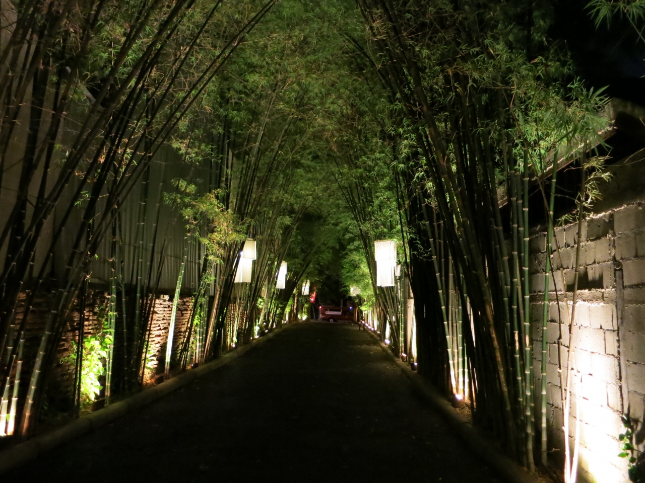 ラチャダムヌン通りに繋がる出入り口は竹林で覆われていて、前を通る観光客の方も写真に収めていました。