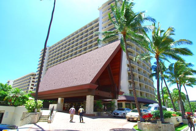 ワイキキパークホテルの中を通ってシェラトンに抜けるルートでカラカウア通り中央も至近距離です。