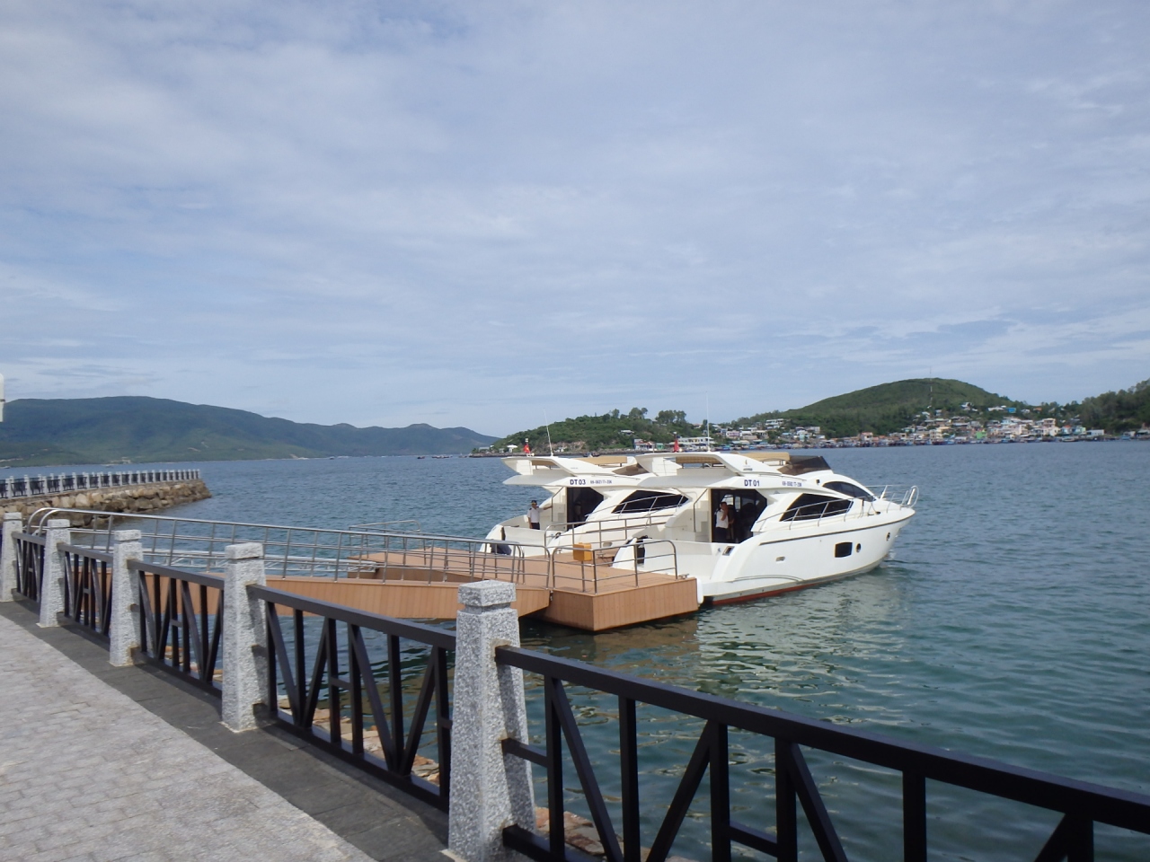 ニャチャン本土の港から専用クルーザー(24時間・30分おき)で10分程乗って移動します。