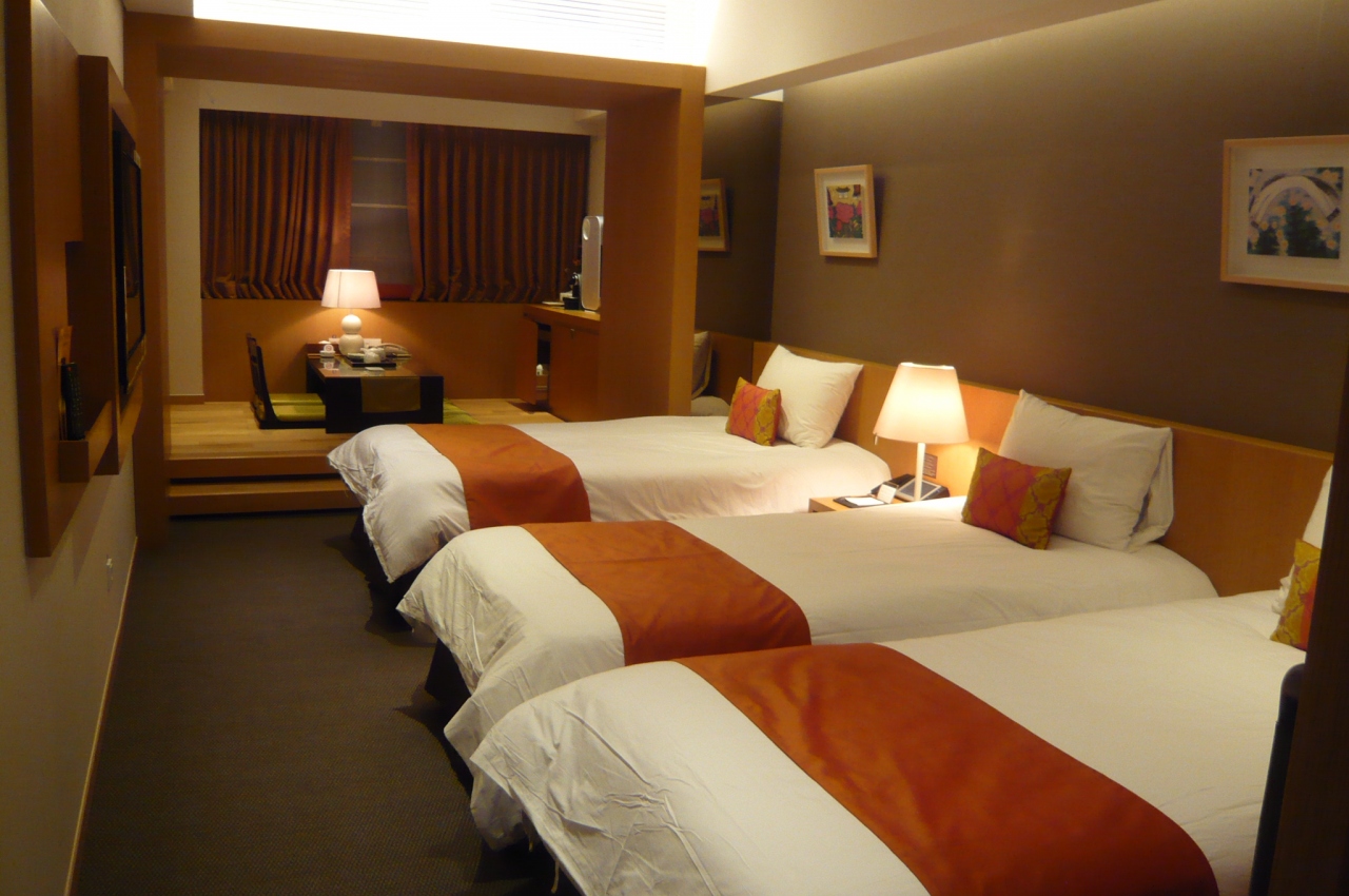 ベットがエキストラでなく完全に3人仕様の造りになってるので、ベットの取り合いは不要。